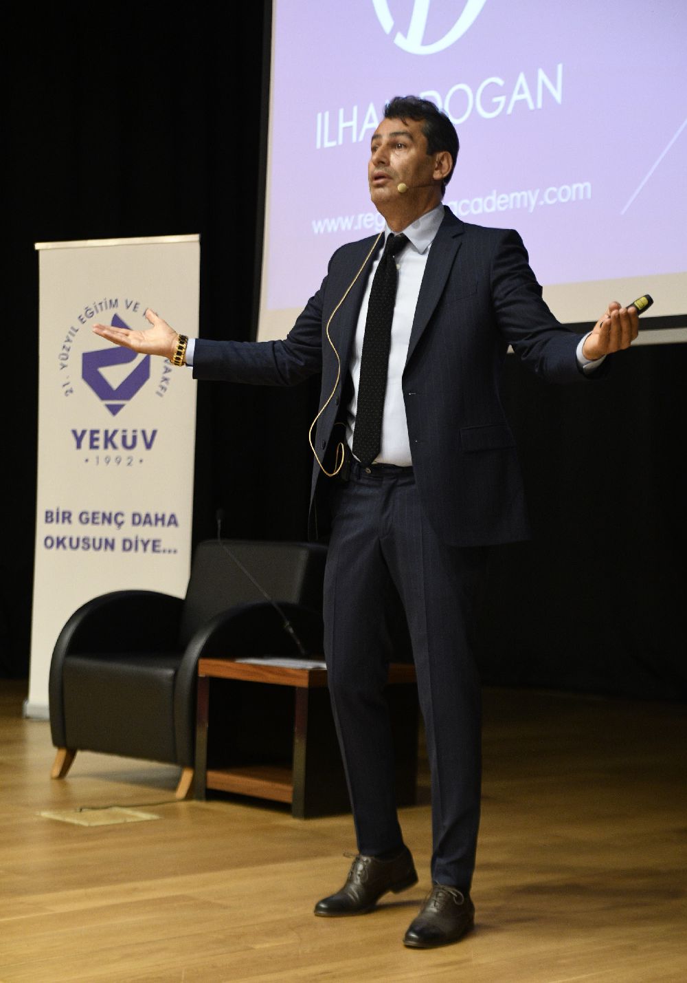 Beşiktaş’daki Bahçeşehir Üniversitesi Fazıl Say Konferans Salonu’nda düzenlenen etkinlikte YEKÜV’ün misafiri olarak iki yüzden fazla öğrenci ile bir araya gelen İlhan Doğan, hayat tecrübelerini ve kişisel gelişim ile ilgili düşüncelerini paylaştı.