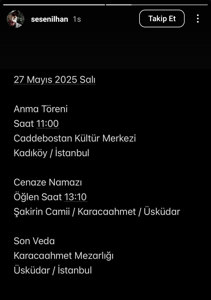 Bir süredir hastanede kanser tedavisi gören ve sabah saatlerinde hayatını kaybeden İlhan Şeşen'in (76) cenaze programı belli oldu.