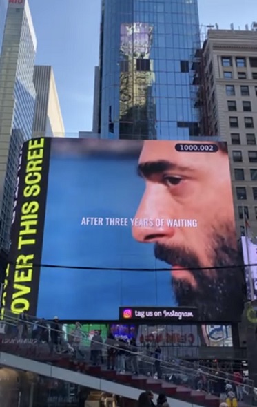 New York Manhattan'daki ünlü Time Square Meydanı’ndaki dev dijital ilan panosunda alan kiralayan İlker fanları sanatçının aksiyon görüntülerinden oluşan bir video yayınladılar.