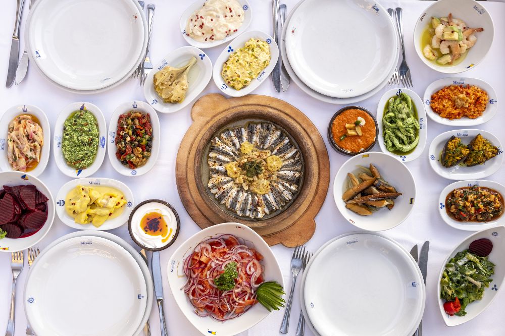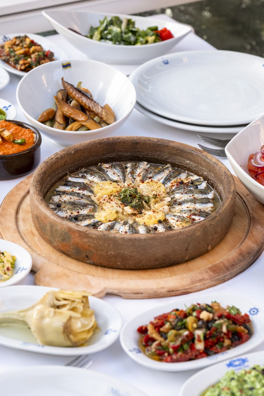 Başlangıç olarak; Ayvalık kırma yeşil zeytin, Midyat acur turşusu, sarımsaklı ekmek dilimi ile mısır ekmeği yer alıyor. Soğuk meze dolabından ve salata çeşitlerinden seçeceğiniz alternatiflerin ardından ara sıcaklarda; kalamar tavadan tereyağlı karidese, fener kavurmadan balık külbastıya, deniz mahsulleriyle hazırlanan börekten balık köftesine, organik sıcak Ege ot kavurmasına dilediğiniz iki çeşidi seçebilirsiniz.