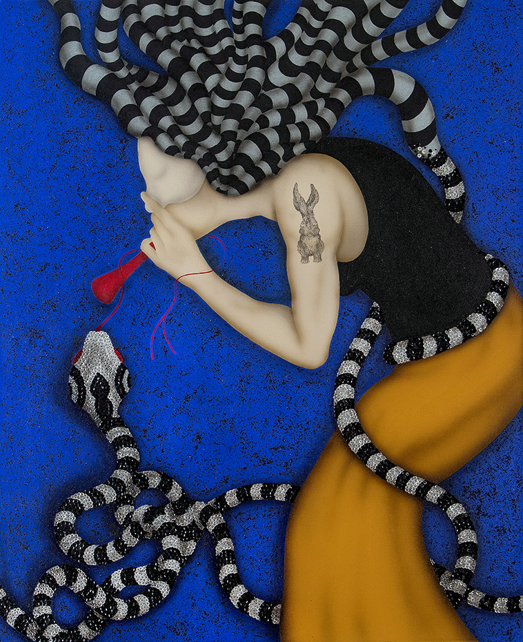Sanatsal üretimlerinde çağrışımcı düş gücü ile eleştirel-estetik bir perspektife sahip olan Batıbeki, resimleri ve farklı medyumlar kullandığı diğer eserlerini, mitik hikayelerin, toplumsal zihniyetin ve kültürel deneyimlerin ortak donanımları olarak yorumluyor. Bu görsel yorumlarda birer ikona dönüşen kadın ve yılan, nice sırları barındıran bir güç, sonsuzluğu aktaran bir rehber, şifa ve zehri aynı anda sunan dünyanın ve yaşamın kendisi olarak betimleniyor.