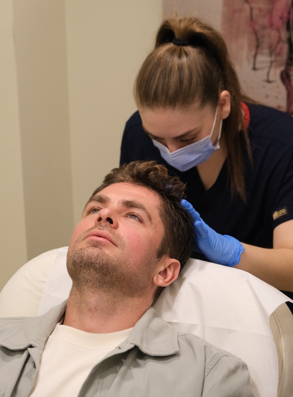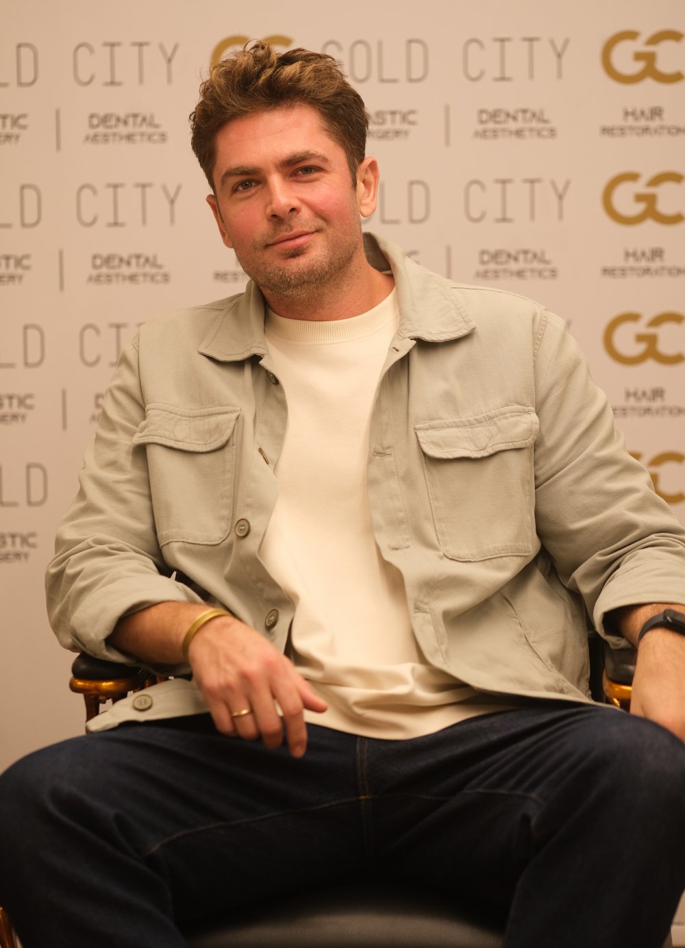 Oyuncu Mert Öcal, Ataşehir'deki Gold Cityhair'de saçlarına önce kendisinden alınan kan ve kök hücre ile PRP tedavisi yaptırdı.
