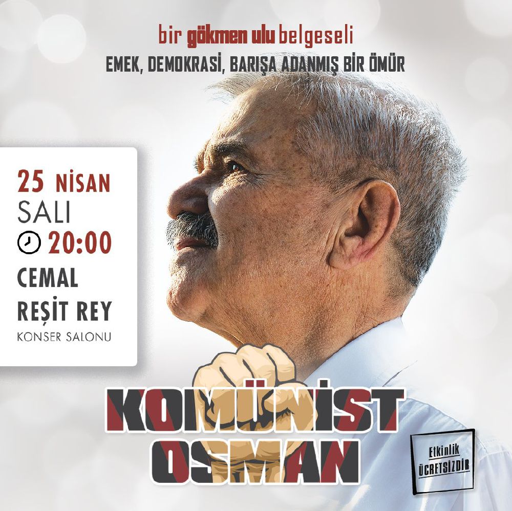 İzmir’de gerçekleştirilen galanın ardından birçok ilçede gösterimi yapılan Komünist Osman Belgeseli, bu kez İstanbul’da seyirci ile buluşacak. Etkinlik yarın saat 20:00'de Cemal Reşit Rey Konser Salonu'nda ücretsiz olarak gerçekleştirilecek.