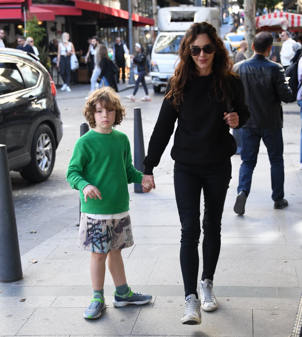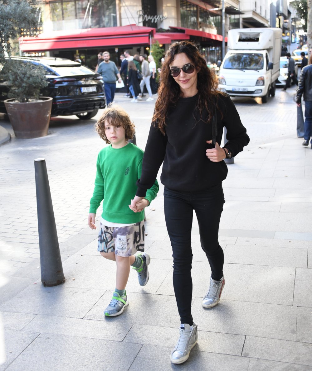 Sıcak ve güneşli havayı fırsat bilen Hande Ataizi, parka götürdüğü oğlu ile objektiflere poz verdi.