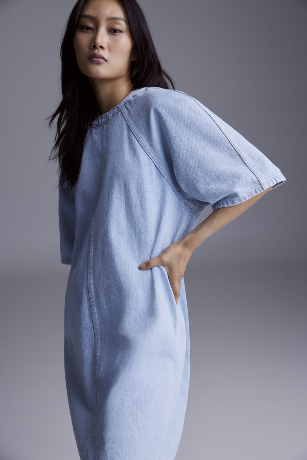 Kadın kombinlerinde, Wide Barrel Jean soluk denim, geniş paçalar ve daire şeklinde yamalarla yeniden yorumlanıyor. İnce denim kumaş ile tasarlanan elbise modeli sportif ve rahat bir tarz sergiliyor. Kalın örgü deseni ve açık renk tonlarıyla oversize kadın süveteri ise bu sezonun dikkat çeken parçaları arasında yer alıyor.