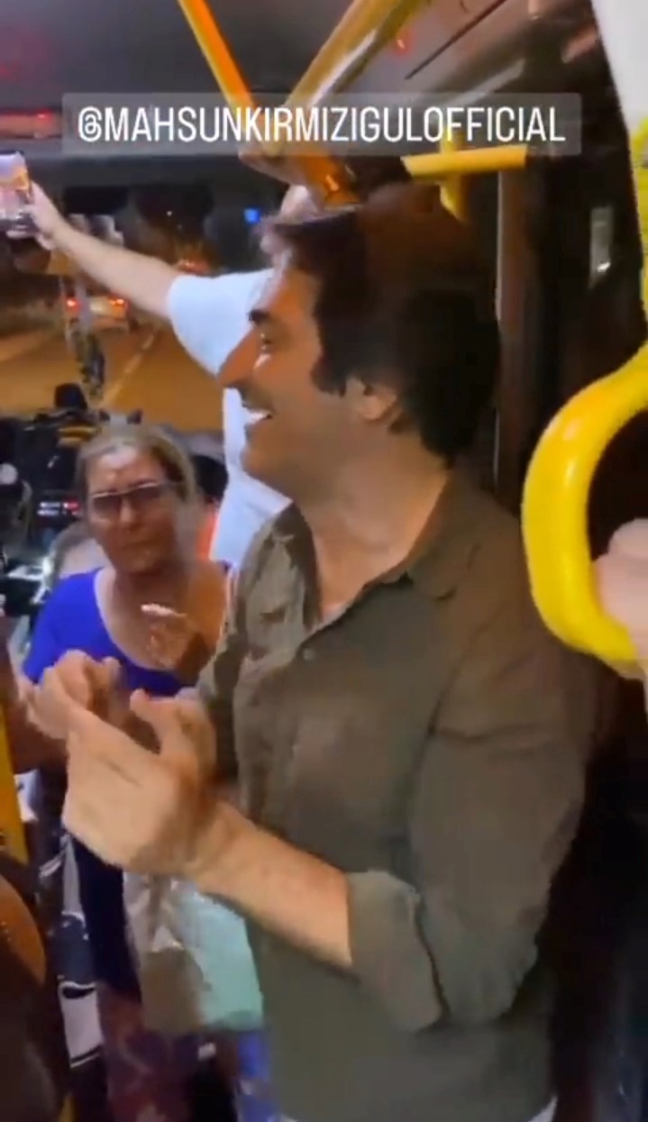 O anları Instagram'dan paylaşan Kırmızıgül, "Çeşme’de cumartesi çıkacağım Günay programı öncesinde arkadaşlarımızla yemeğe çıktık. Yemekte alkol almış olan arkadaşımın aracını kullanarak onu evine bıraktık ama gecenin o saatinde hotele gitmek için taksi aradık, bulamayınca minibüse bindik. Minibüse binince kısa bir şoktan sonra, çok samimi bir ortam gelişti. İnsanlar şarkı söylememi isteyince, onları kırmadım ve hep birlikte 20 dakikalık unutulmaz anlar yaşadık" dedi.