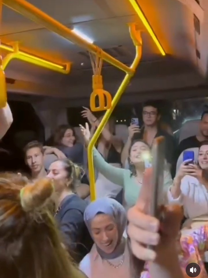 Otobüsün içindekilerle sohbet eden şarkıcı, mini bir konserde verdi.