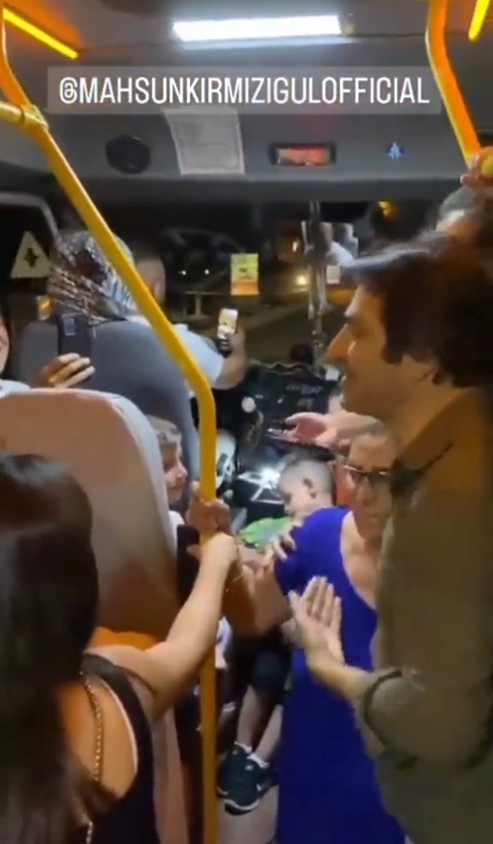 Şarkıcı, taksi bulamayınca minibüse bindi.