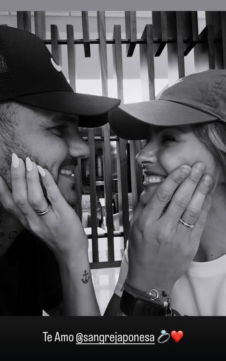 Nara'dan olaylı bir şekilde boşanan Galatasaray'ın Arjantinli futbolcusu Icardi, sevgilisi Suarez ile yüzük karesi dikkat çekti. İkilinin parmağındaki yüzük ve Icardi'nin yüzük emojisi koyması, evlilik teklifi olarak yorumlandı.