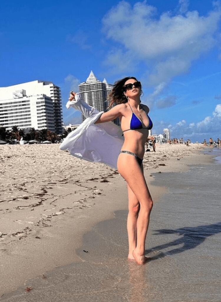 Miami’ye adımını atar atmaz soluğu sahilde alan Melis Sezen düzgün fiziğiyle dikkat çekti.