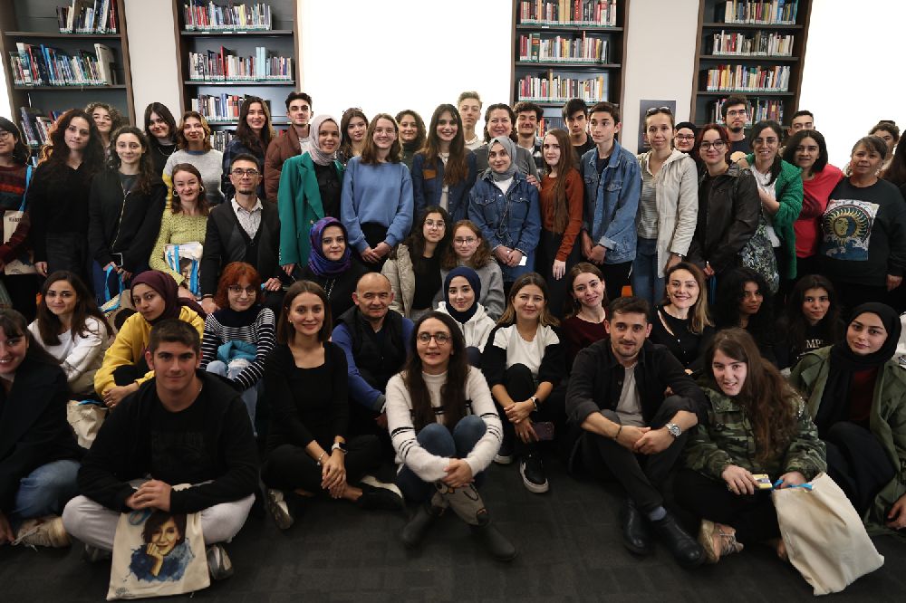 Okuma etkinliğinin ardından katılımcılar ile söyleşi gerçekleştiren Meriç Aral gençlerle bol bol fotoğraf çektirdi.