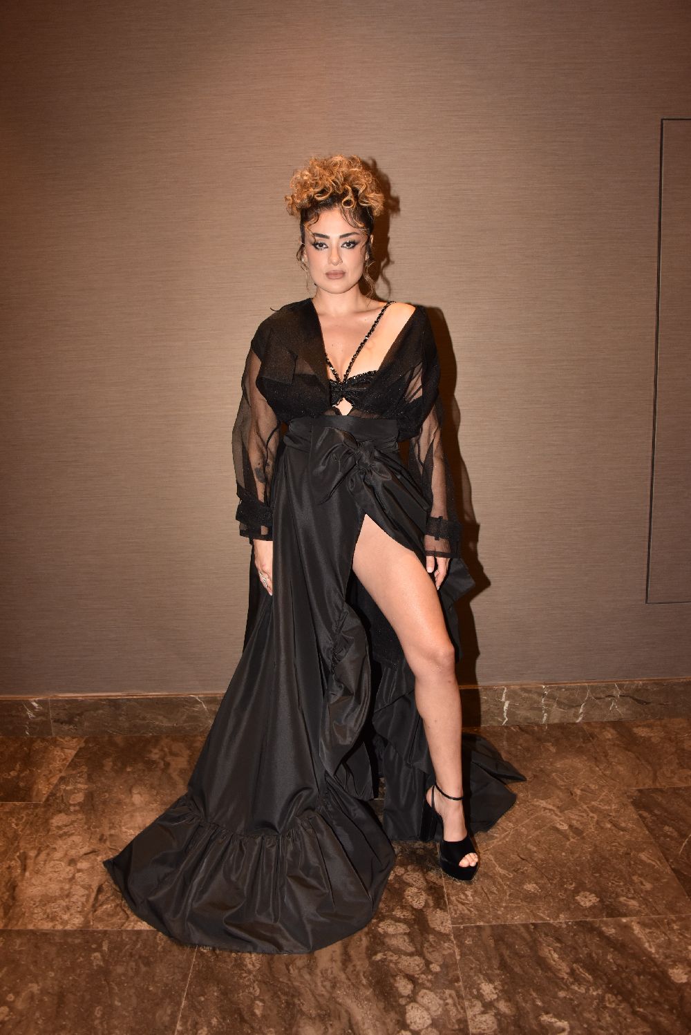 Şarkıcı; Abdullah Greş ve Dr. Hanan Nasr ev sahipliğindeki geceye siyah stiliyle ve yırtmacıyla damga vurdu.