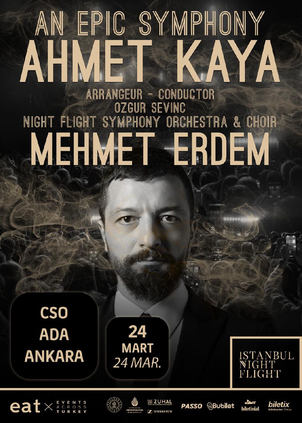 An Epic Symphony, ülkemizin en önemli değerlerinden Ahmet Kaya’yı Mehmet Erdem’in sesiyle Night Flight Symphony Orchestra & Choir eşliğinde bir kez daha ağırlamaya hazırlanıyor. 24 Mart akşamı seyirci ile buluşacak olan Mehmet Erdem, Ankara CSO sahnesinde Night Flight Symphony Orchestra & Choir eşliğinde Ahmet Kaya’nın en sevilen şarkılarını seslendirecek.