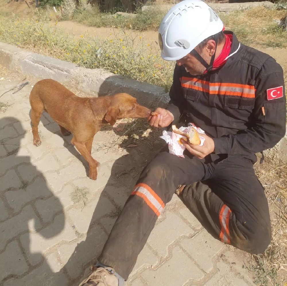 Oyuncu, Ödemiş yangınlarında bir köpek kurtardı.
