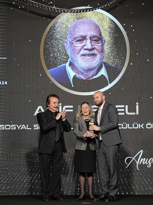 Sürpriz birçok ismin de katıldığı organizasyonda Develi restoranlarının sahibi Arif Develi’nin anısına hazırlanan özel ödül, Banu Noyan ve Orhan Gencebay tarafından ailesine takdim edildi.