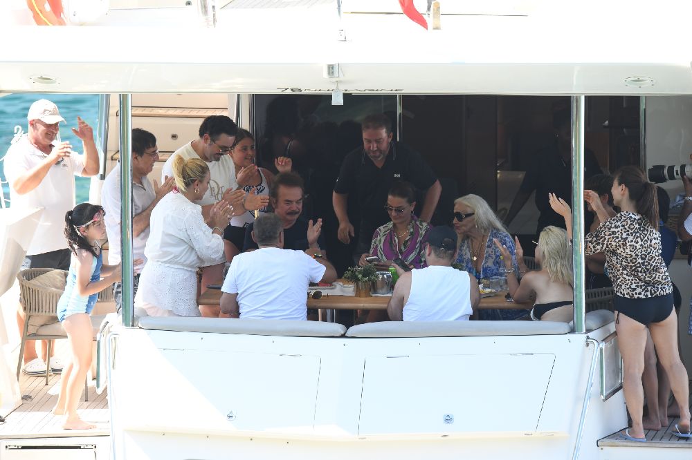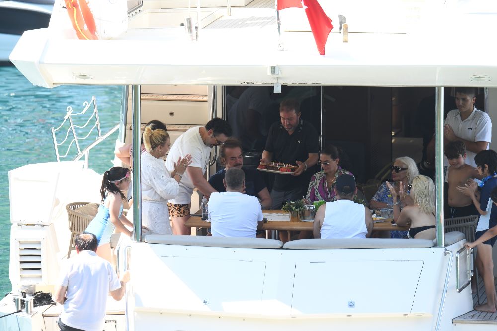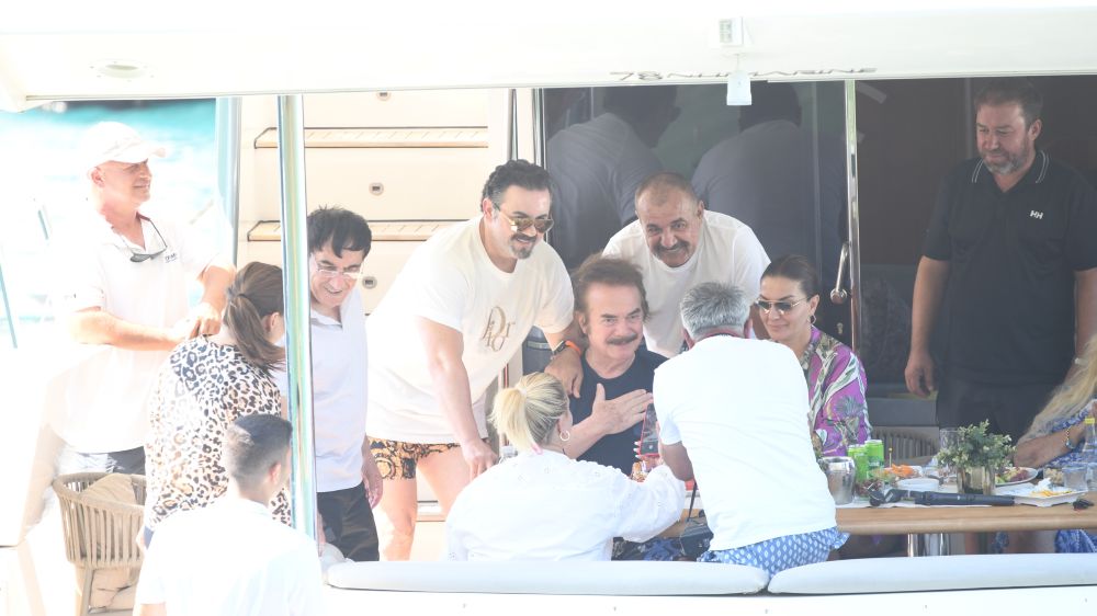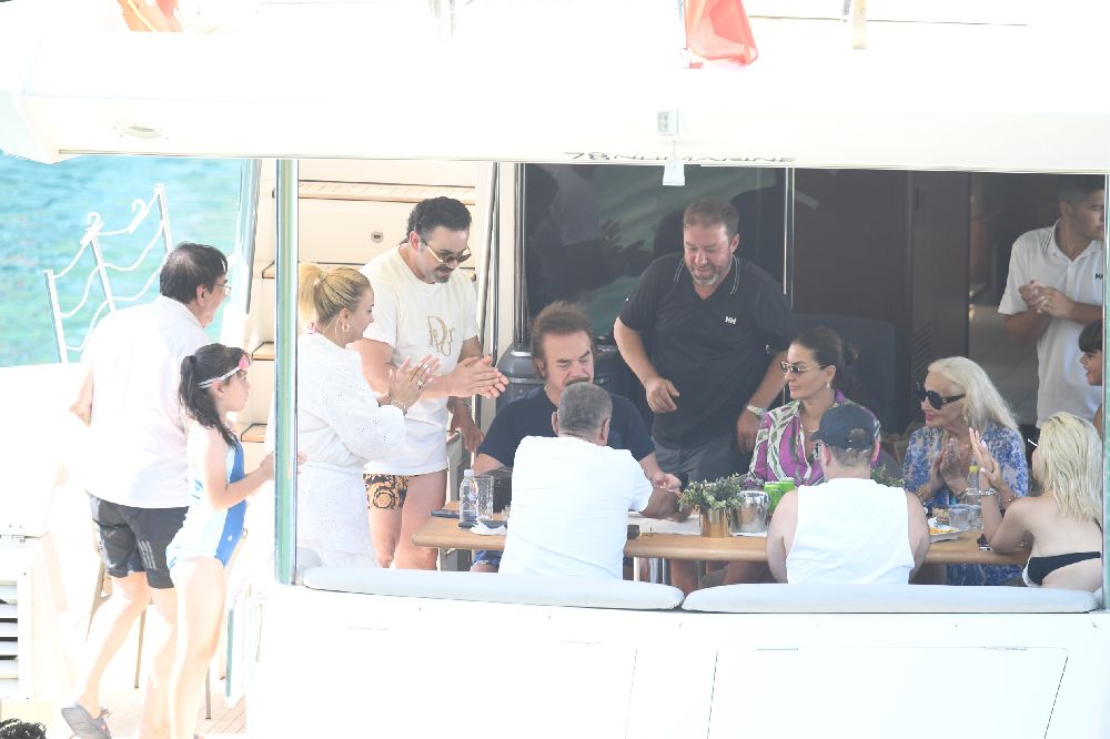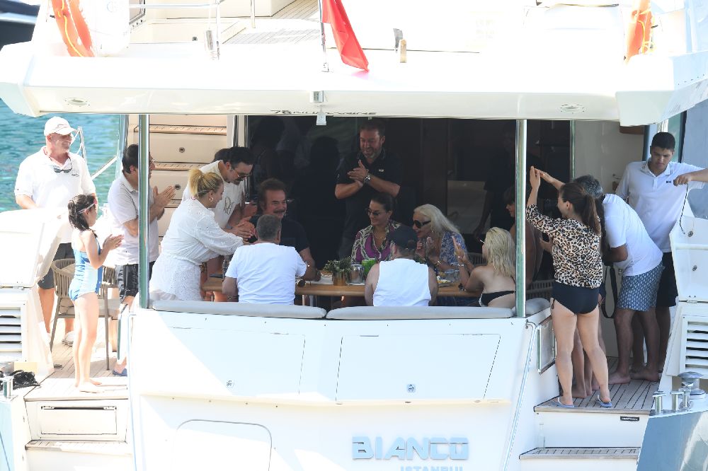 Gencebay ve Sezer, Cennet Koyu'nda demirledikleri teknedeki kutlamadan sonra, akşamda ise başka bir mekana geçti.