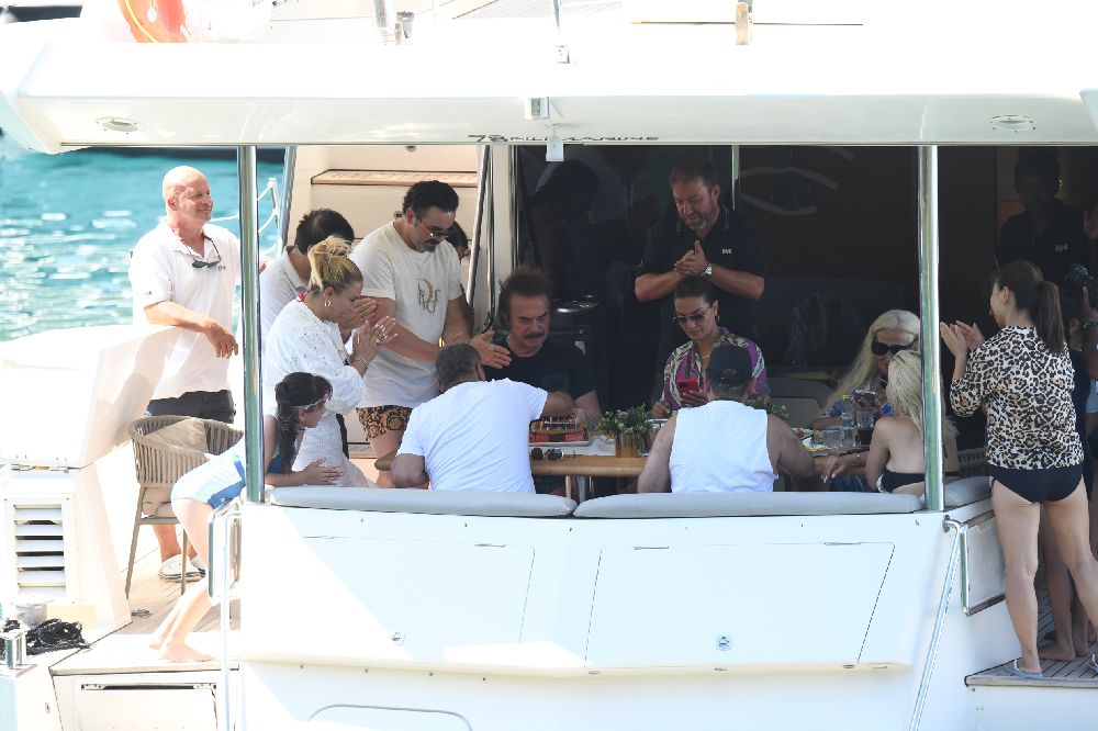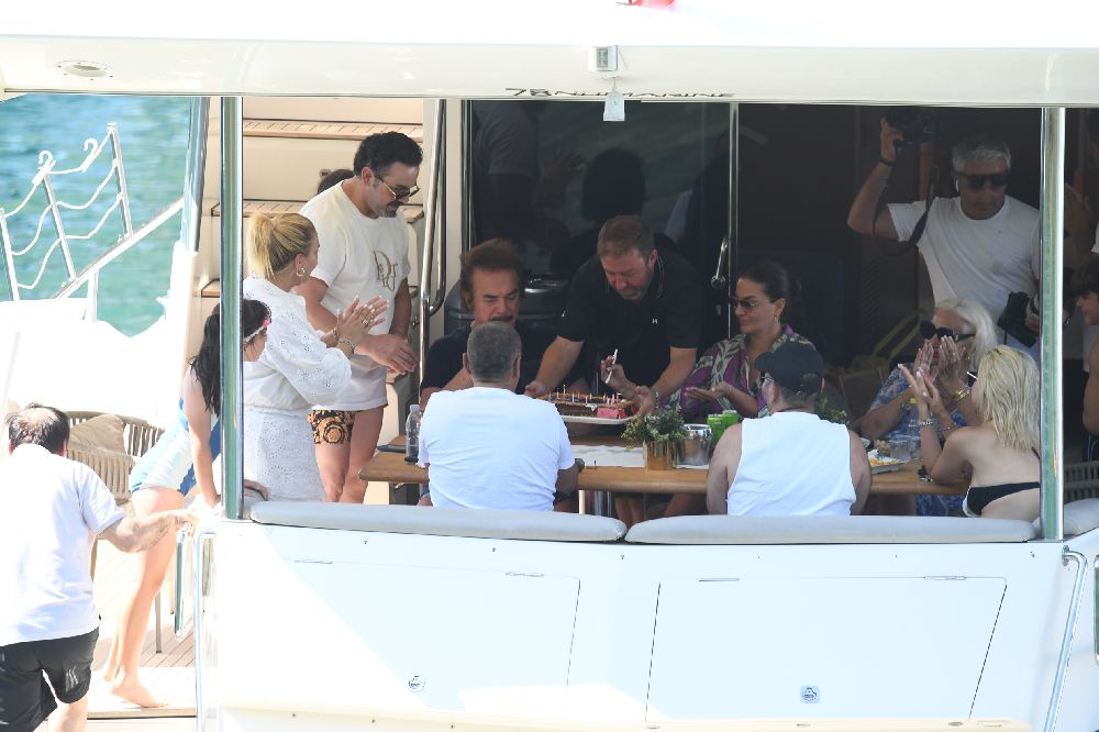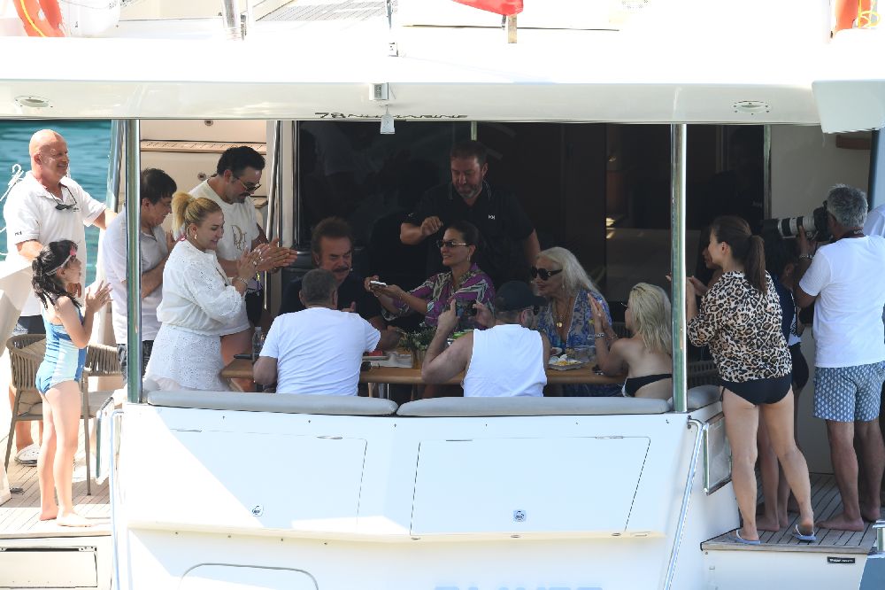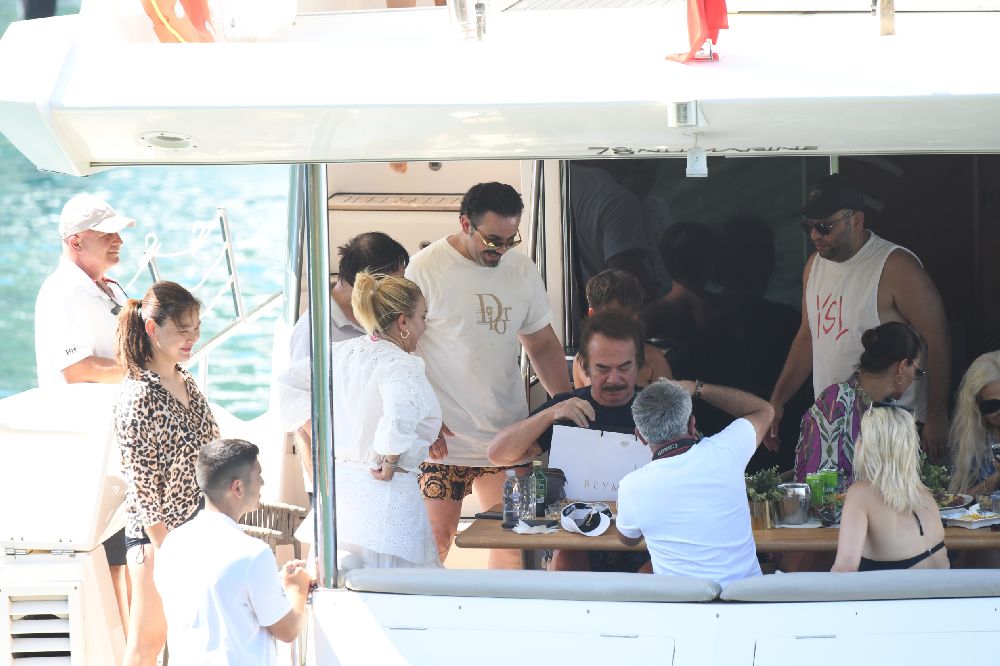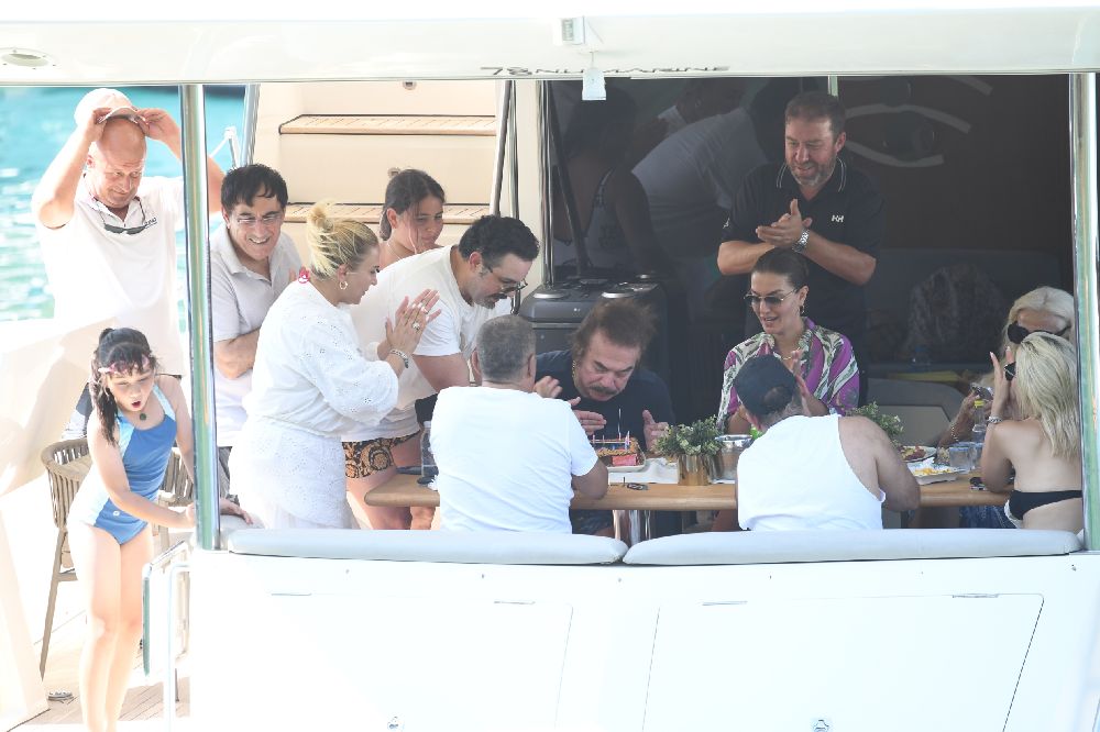 Gencebay ve Sezer, Cennet Koyu'nda demirledikleri teknedeki kutlamadan sonra, akşamda ise başka bir mekana geçti.