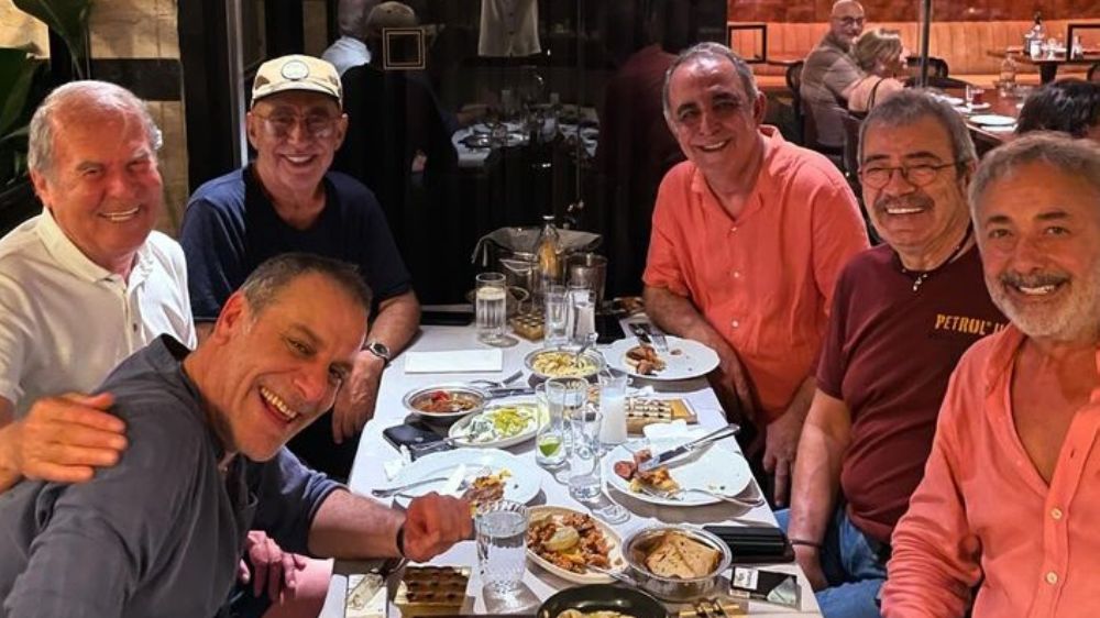 Oyuncu, Şener Şen, Mehmet Aslantuğ, Selçuk Yöntem ve teknik girektör Mustafa Denizli ile yapımcı Necati Akpınar'la bir araya geldi. Güven kareye, "Saygılarımla krallar" notunu düştü.