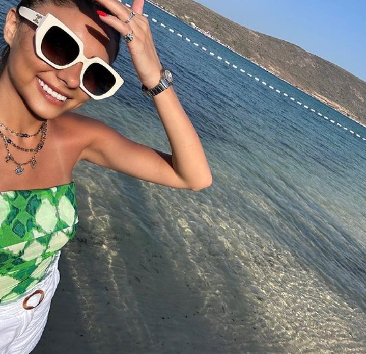 Çeşme'de tatilde olan Dadgar'ın paylaşımları ise dikkat çekti.