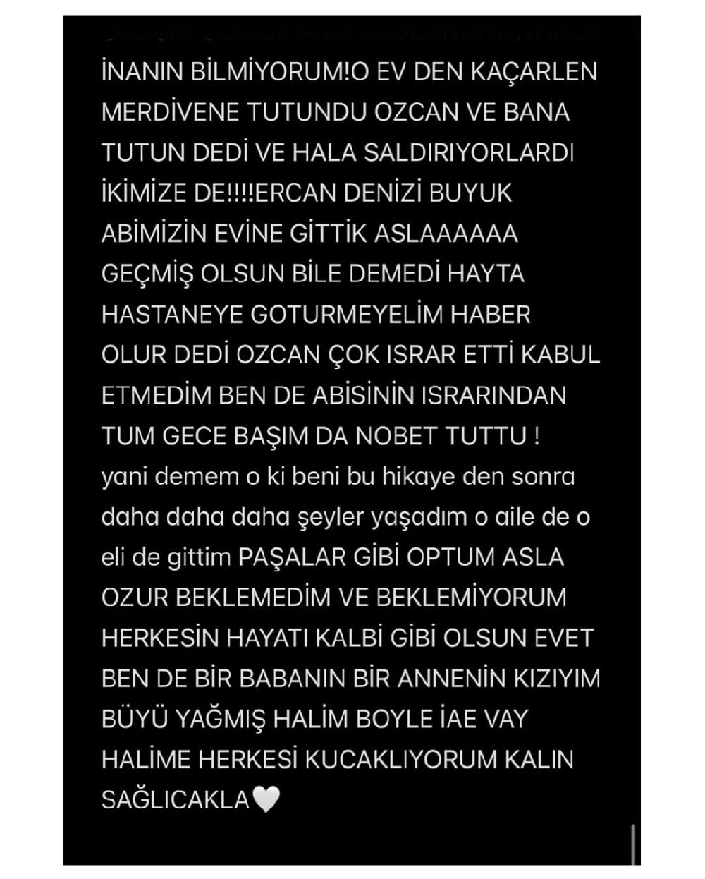 Samar Dadgar, Instagram'dan bir paylaşım yaparak sanatçının kardeşi Yurda Güler ve annesi Kadriye Deniz’den şiddet gördüğünü söyledi.