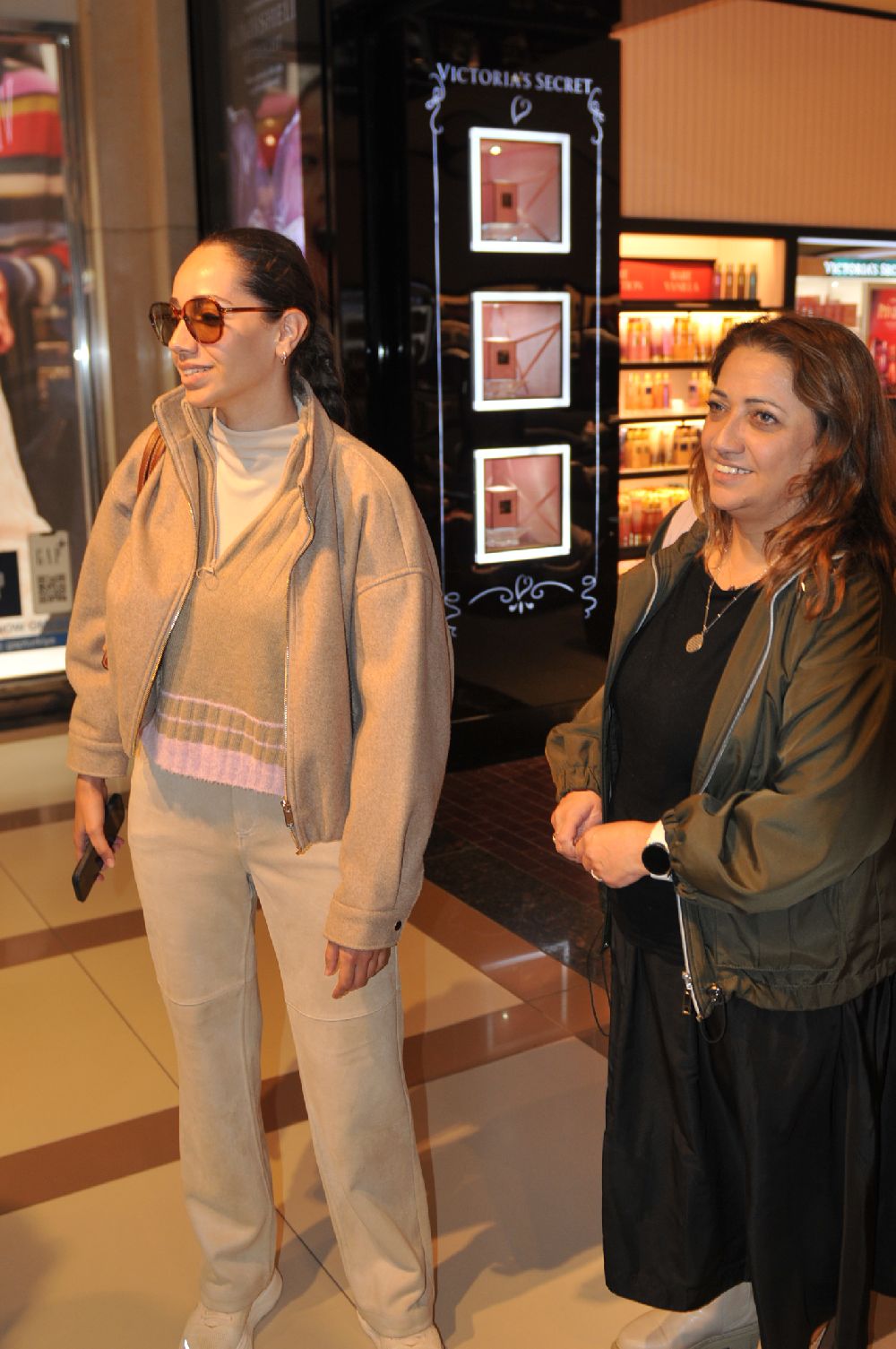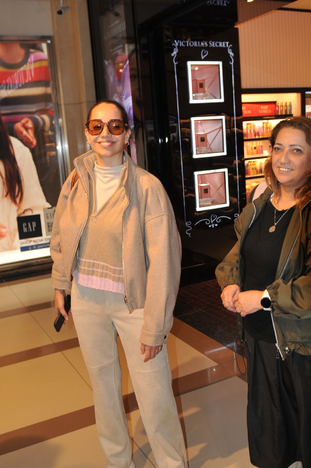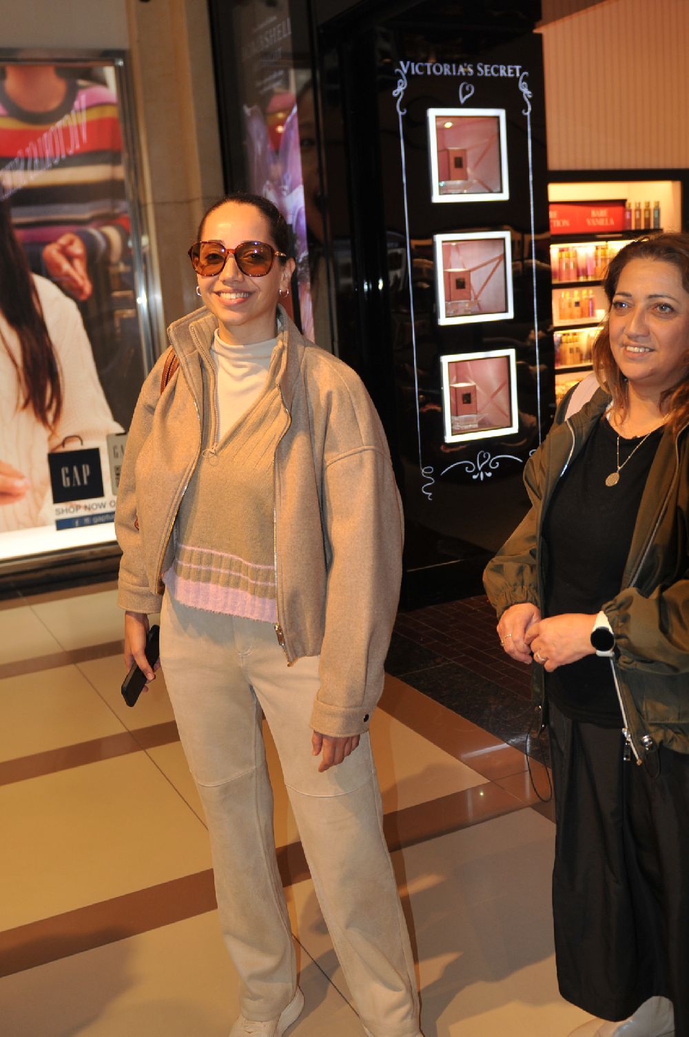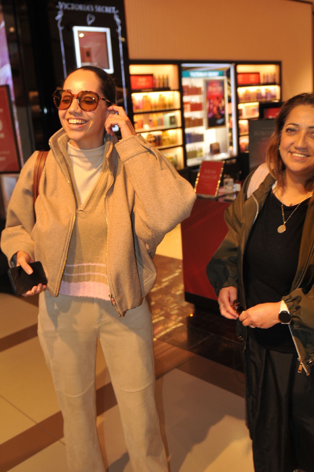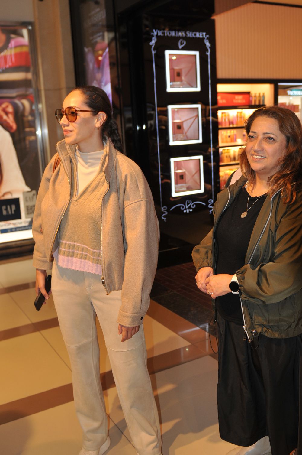 Anne ve teyzesiyle mağazaları dolaşan oyuncu, "Bugün kızlar günü yaptık. Annemin doğum günü yaklaşıyor. Ona hediye bakmaya geldik. Bildiği sevdiği bir şey olsun" dedi.