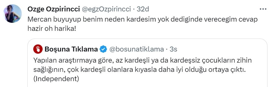 çok kardeşli olanlara kıyasla daha iyi olduğu ortaya çıktı" çıktı haberine yorum yaptı.
