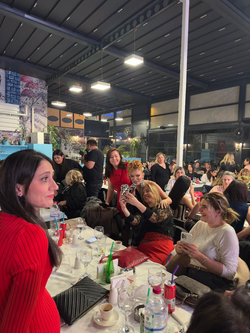 Salonu dolduran yüzlerce kadın hep birlikte müziğe tempo tutarak kimi zaman göbek attılar