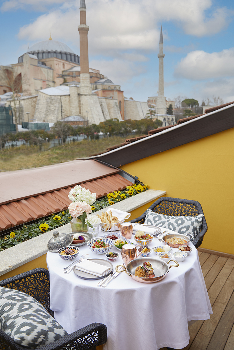 Tarihi yarımadanın kalbinde yer alan Four Seasons Hotel Sultanahmet, Ramazan boyunca misafirlerini özenle hazırlanmış lezzetler eşliğinde ağırlıyor. Paylaşımlık iftariyelikler, birbirinden leziz çorba çeşitleri, odun fırınında hazırlanan pide alternatifleri, karışık et ve balık ızgara çeşitleri, mantı ve gözleme gibi geleneksel tatlar, fasıl grubunun ezgileri eşliğinde misafirlerle buluşuyor.