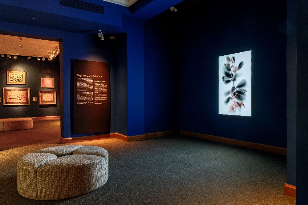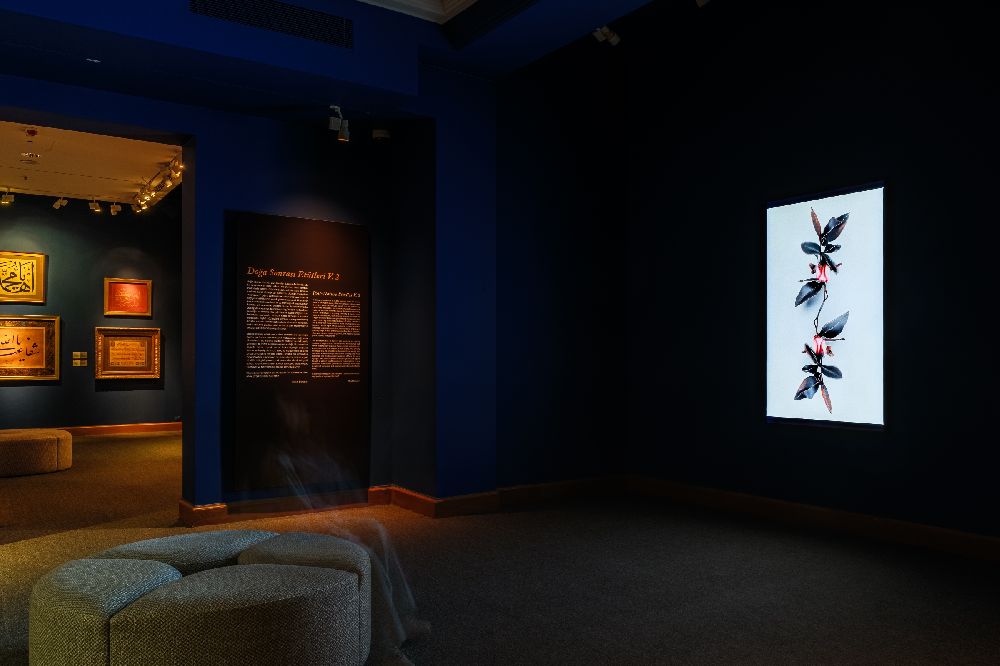 Durusoy’un videosu, Kitap Sanatları ve Hat Koleksiyonu’ndaki bitkisel motiflerle süslenmiş eserleri ile sıra dışı bir etkileşim kuruyor, altın yaldızla bezenmiş simetrik kaligrafik kompozisyonlardan ilham alarak, doğa ve teknoloji arasındaki gerilimi adeta “dijital bir natürmort” olarak yeniden yorumluyor.