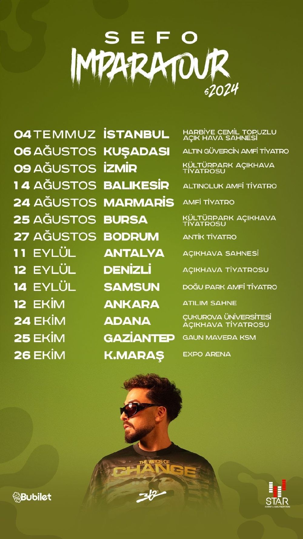 İmparatour Turnesi, Sefo'nun en sevilen şarkılarını ve yeni hitlerini bir araya getirecek. Hayranları, Harbiye Açık Hava'da Sefo'nun enerjik ve coşkulu performansını izlemek için sabırsızlanıyor.