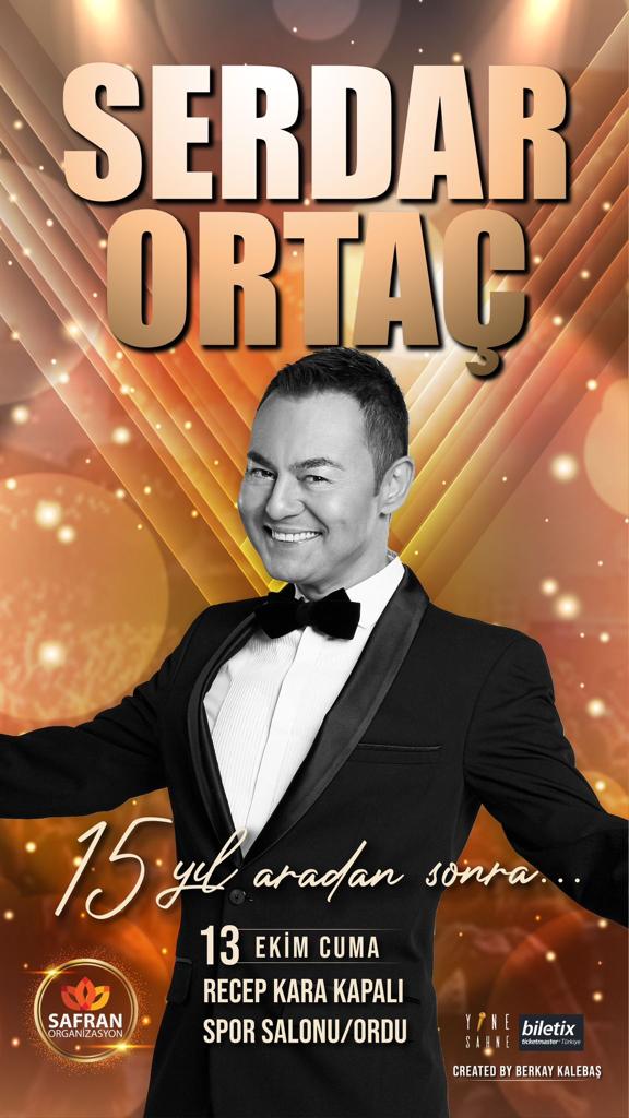 Serdar Ortaç, Safran Yapım Organizasyon tarafından gerçekleşecek konserlerin startını 12 Ekim’de Trabzon’da verecek. 3 şehir gezecek olan Ortaç, 13 Ekim Ordu ve 14 Ekim Samsun konserleri ile sevenleriyle buluşacak.