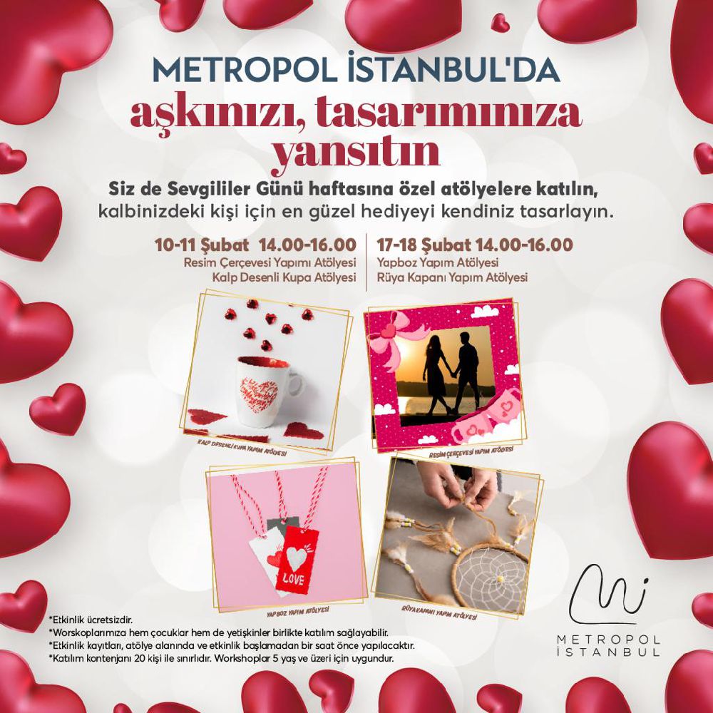 Güzel sözlerin sürprizler eşliğinden dile geldiği bu özel gün için hazırlık yapan Metropol İstanbul Alışveriş Merkezi, 1-18 Şubat tarihleri arasında ‘Sevgililer Günü Alışveriş Festivali’ ile atölyelere, söyleşilere ve birbirinden güzel hediye alternatiflerine ev sahipliği yapacak.