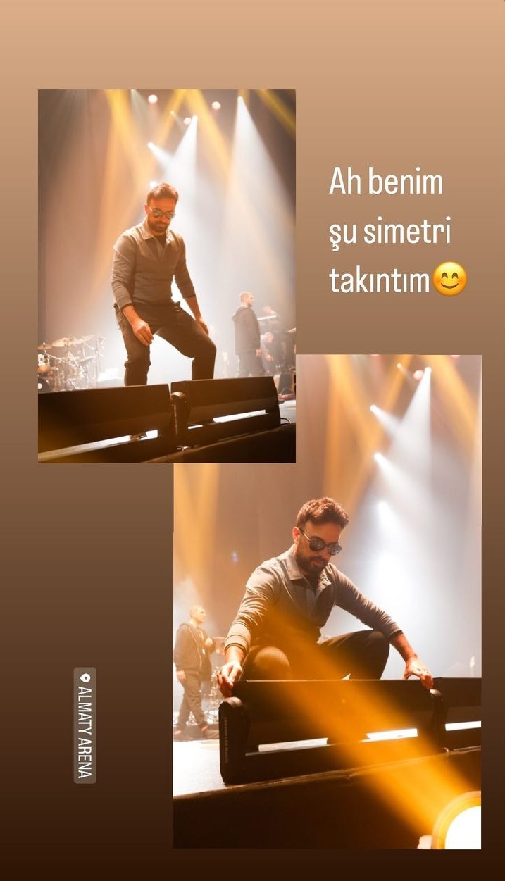 Tarkan, sahne önünde hoparlörü düzelttiği anı yayınlarak, "Ah benim şu simetri takıntım" diye yazdı.