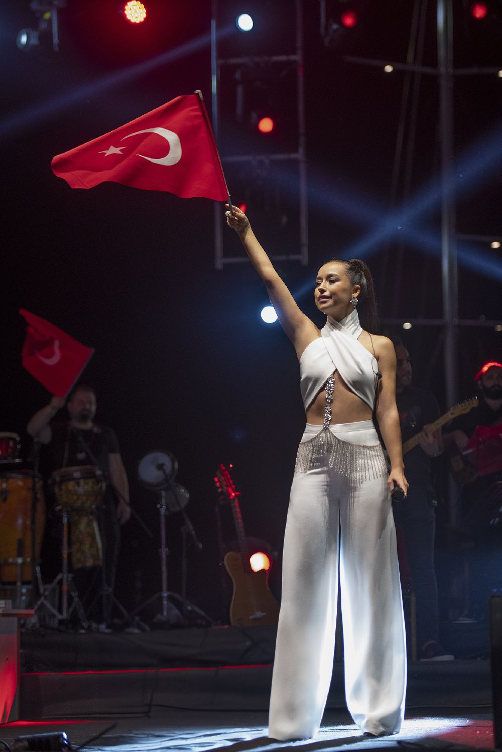 20 bin kişinin katıldığı Atatürk Meydanı’nda gerçekleşen konserde Tuğba Yurt’un şarkılarına hep bir ağızdan eşlik edilmesi dev bir koroyu anımsattı. Kendi şarkılarının yanı sıra farklı tarzda şarkıları da seslendiren başarılı sanatçı, dinleyenlerden tam not aldı.
