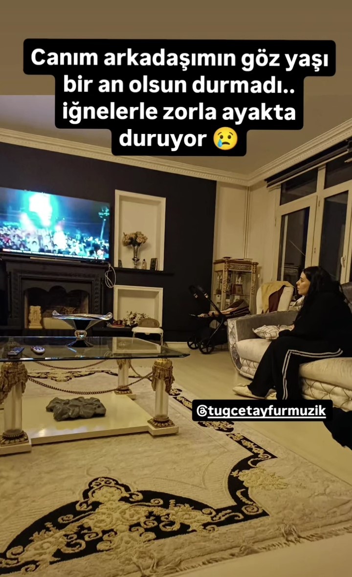 Murat Uçmaz, Tuğçe Tayfur'un karesini paylaşarak, "Canım arkadaşımın gözyaşı bir an olsun durmadı. İğnelerle zorla ayakta duruyor" diye yazdı.
