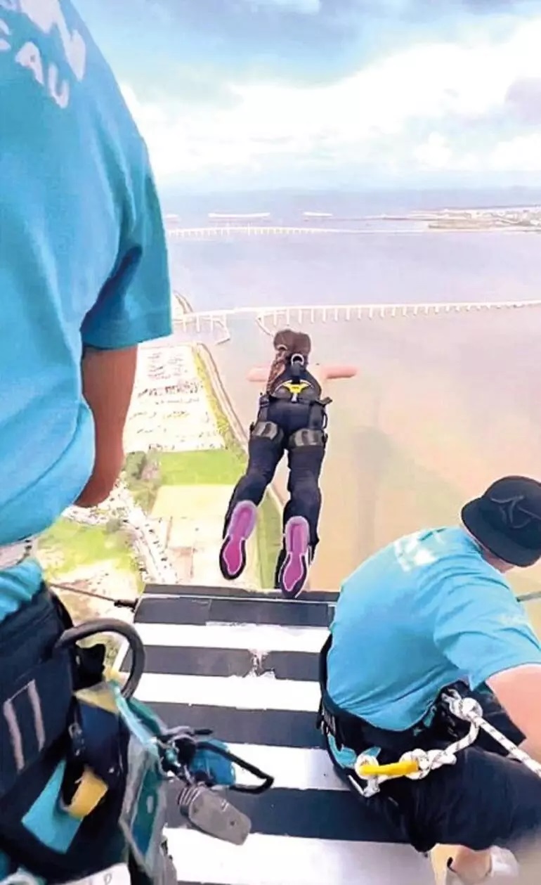 Eski futbolcu Sabri Sarıoğlu’nun pilot eşi Yağmur Sarıoğlu, ekstrem sporlara olan merakıyla biliniyor. Uçağın yanı sıra motosiklet de kullanan, birkaç ay önce New York’ta 388 metrelik gökdelene tırmanan, ayrıca Rusya’da 207 metre yükseklikten Bungee Jumping yapan üç çocuk annesi genç kadın, bu kez dünyanın en yüksek bungee jumping platformundan atladı.