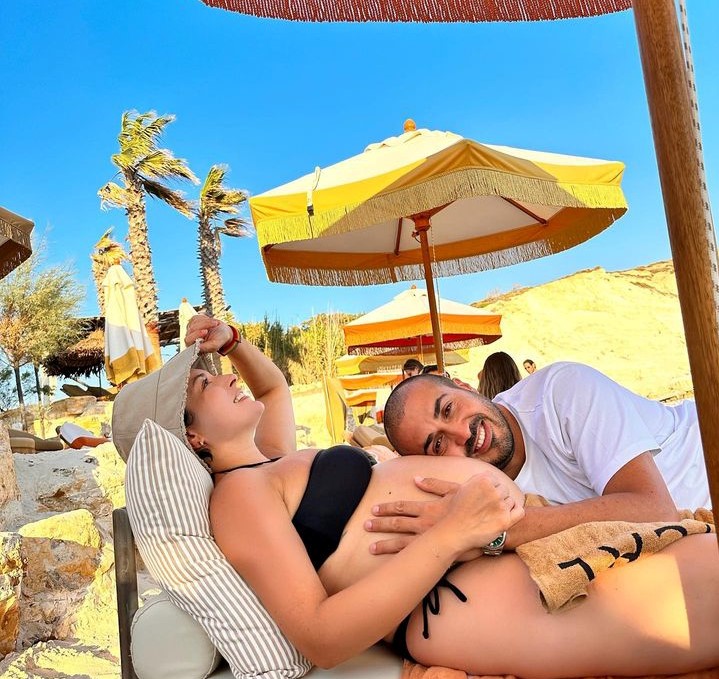 İşletmeci, yedi aylık eşinin karnı burnunda fotoğrafını paylaştı.