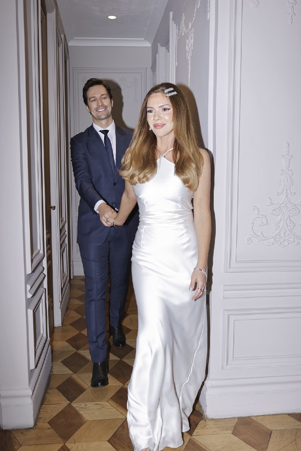 Törene aile yakınlarının yanı sıra Alya, Özgür Daniel Foster, Berkay, Fatih Ürek gibi ünlü isimlerin katıldığı nişan töreninde Merve Dinçkol, İtalyan bir tasarımcının kendisine hazırladığı İtalyan ipeğinden hazırlanan sade bir elbise tercih etti.
