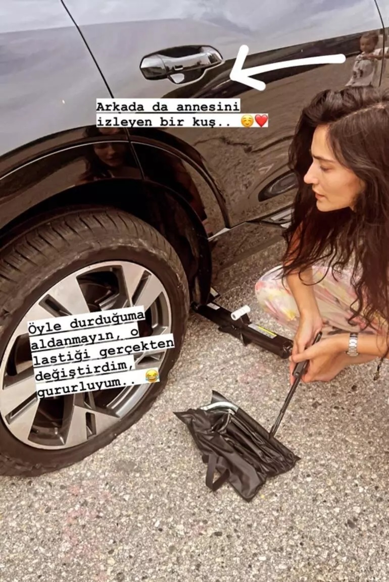 Şu sıralar ailesiyle tatil yapan Aksoy, lastiği patlayan komşusunun yardımına koştu. Eline kriko ve bijon anahtarını alan ünlü oyuncu önce patlayan lastiği söktü, sonra yenisiyle değiştirdi. O anların videosunu Instagram hesabından yayınlayan Aksoy paylaşımına, 'Ne sandınız Türk kadını var burada' notunu düştü.