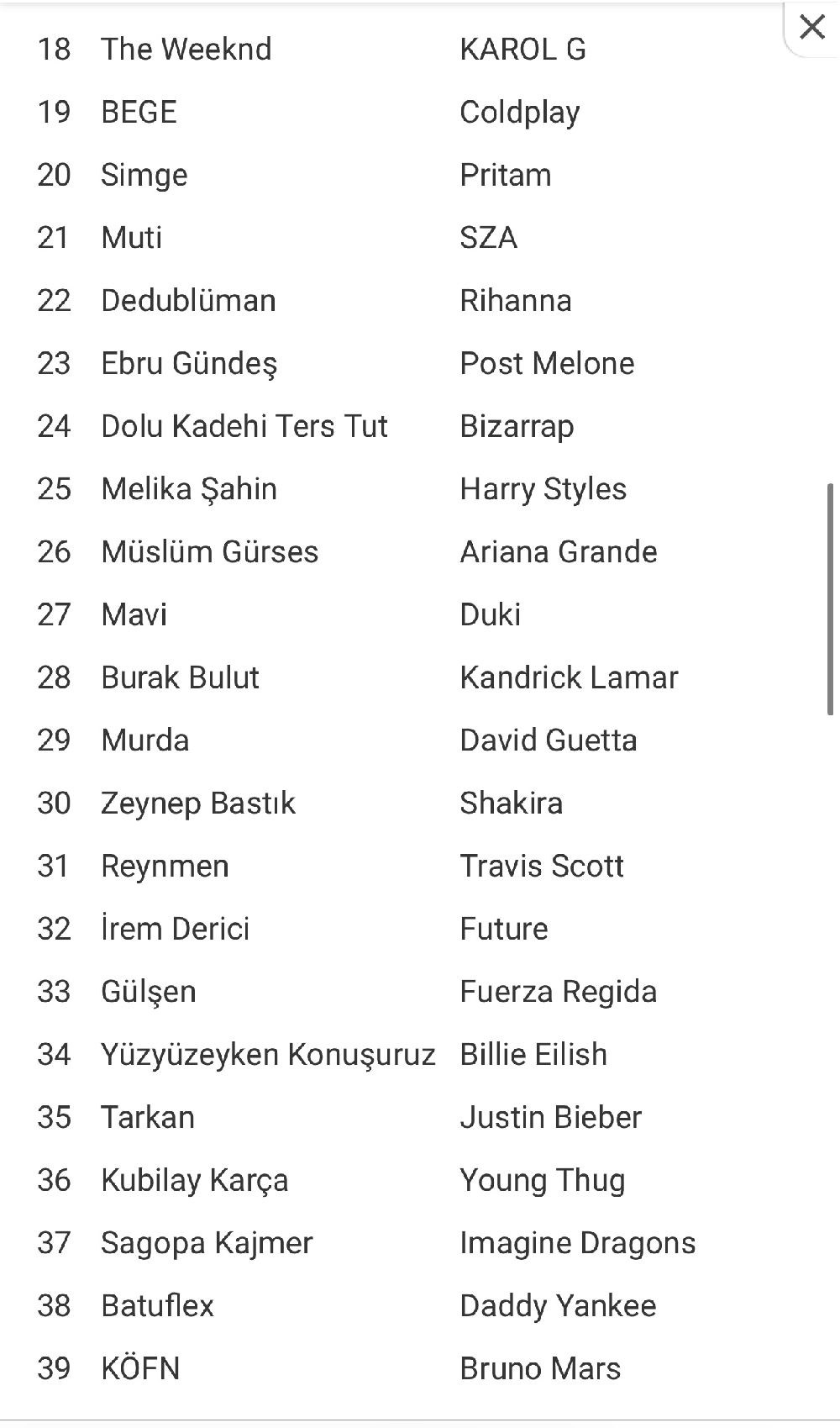Sezen Aksu ve Hande Yener sırasıyla zirveyi paylaştığı listede diğer kadın pop sanatçılar ilk 10’a giremedi.