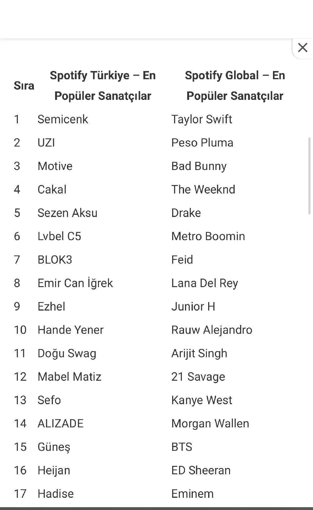 Spotify Türkiye’nin en popüler kadın sanatçısı ilk onda 5 sıradaki Sezen Aksu olurken kadın sanatçılar arasında Afrodizyak albümünün 10 gününde açıklanan listede 10 sırada Hande Yener ikinci en fazla dinlenen kadın pop şarkıcısı oldu.