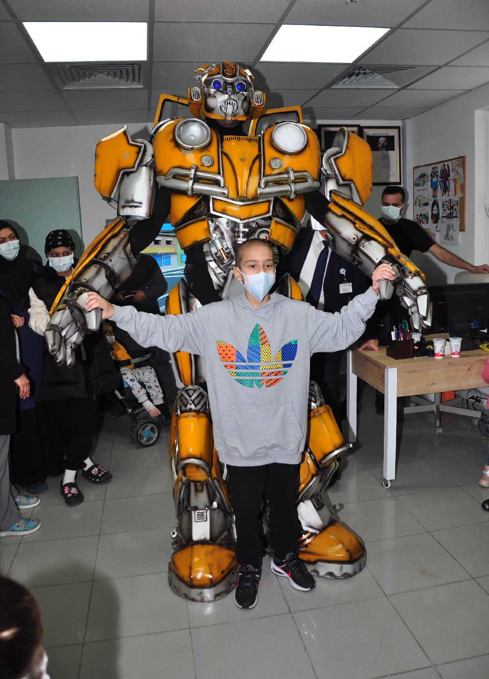Transformers ile bol bol hatıra fotoğrafı çektiren çocuklar, 'bilim-sihir' etkinlğinde ise eğlenerek öğrendi.