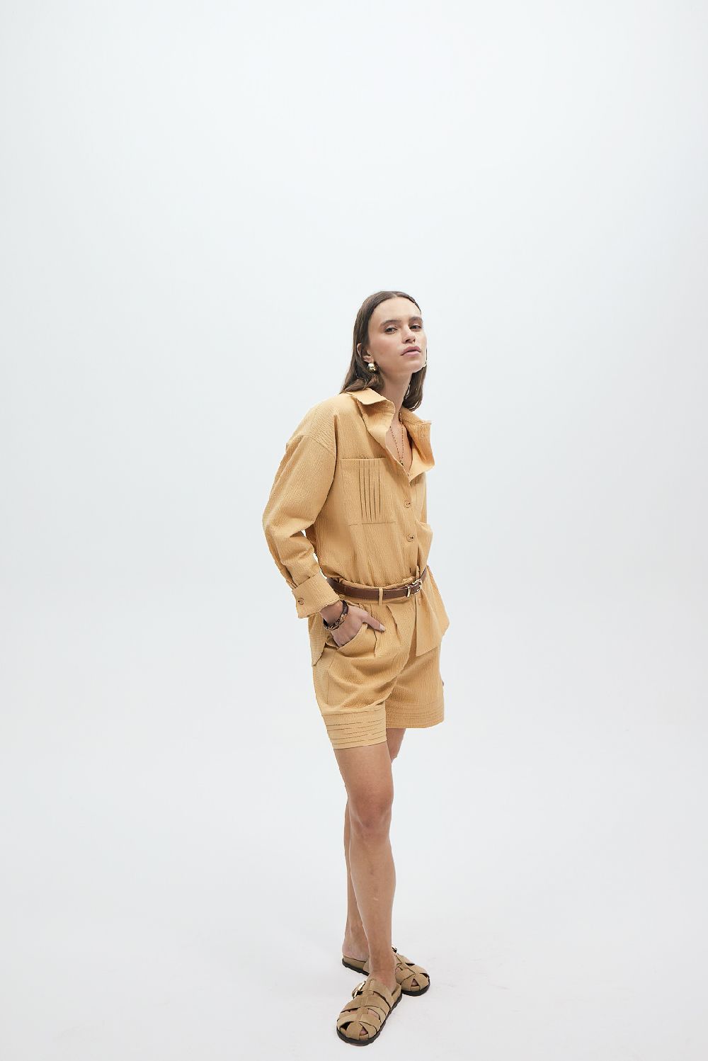 Tasarımındaki asimetrik detaylarla dikkat çeken Mirage Skirt, yırtmaç kesimi ve %100 pamuk dokusuyla geçiş dönemlerinin vazgeçilmezleri arasına giriyor. Amber Top ve Amber Pants, güçlü takım anlayışını sezona uyarlayarak hem birlikte hem de ayrı kullanıldığında sofistike bir stil dengesi oluşturuyor.