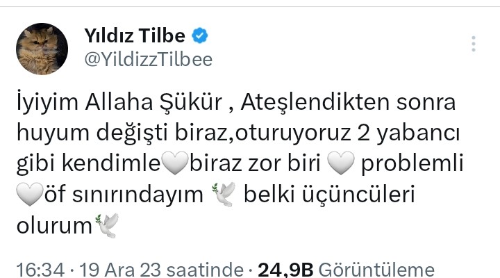 Tilbe, "Burdayım valla. Allah'a şükrediyorum. Hastanedekini tanımıyorum. Haberim yok. Allah herkese şifa versin. Bana da... Amin" diye yazdı.