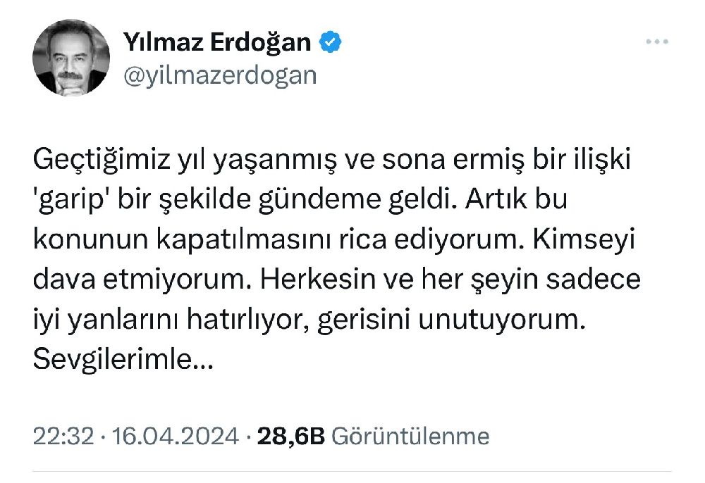 Erdoğan ise, "Geçtiğimiz yıl yaşanmış ve sona ermiş bir ilişki 'garip' bir şekilde gündeme geldi. Artık bu konunun kapatılmasını rica ediyorum.